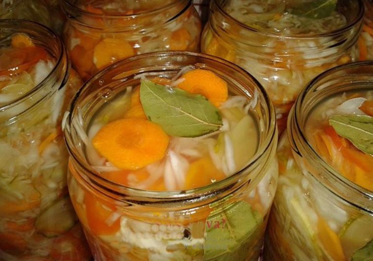 U međuvremenu staviti da provrije ocat u koji smo dodali vodu, šećer, sol, papar i korijander u zrnu. Povrće slagati u staklenke i dobro ga nabiti. Sve preliti sa vrelim preljevom.