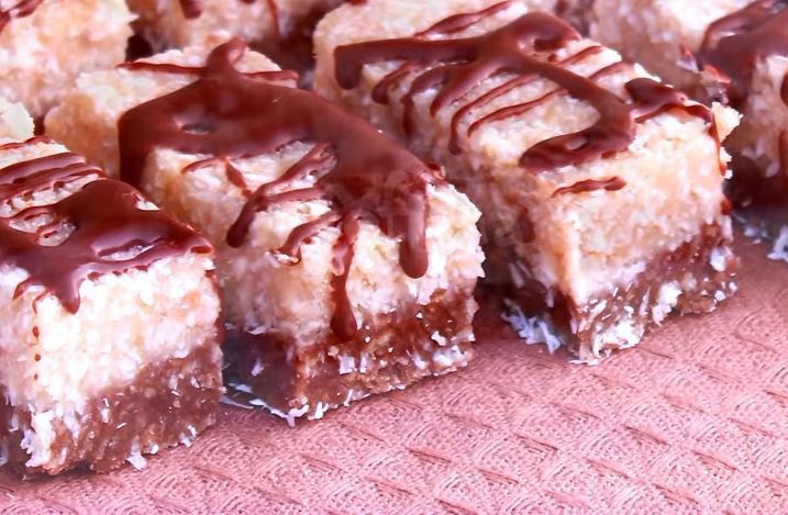 Ovaj svetli deo premazati preko tamnog i ostaviti u frižider da se stegne oko 2-3 sata. Seći štangle pa po želji preliti otopljenom posnom čokoladom ili posuti kokosom.