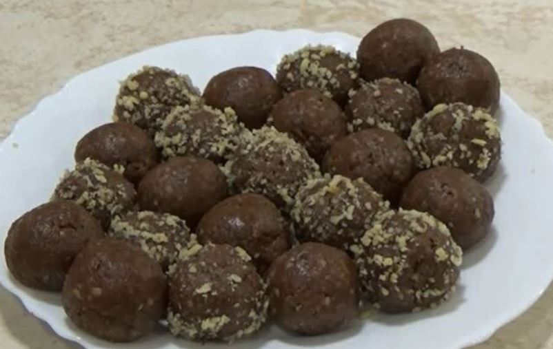 Izmešati orahe i šećer. Istopiti čokoladu i dodati u smesu. Dodati džem i kašiku vode i sve sjediniti. Od smese praviti kuglice. Po želji kuglice valjati u mlevene orahe.