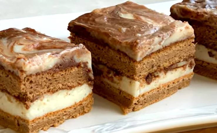 Cokoladni biskvit sa mlecnim filom i cokoladom.