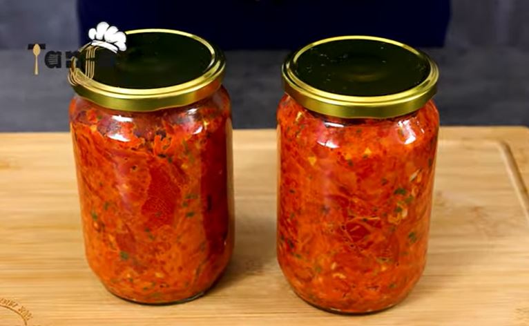 Recept za zimnicu od pečene paprike i belog luka sa peršinom. Cepkana paprika u tegli bez konzervansa i hemije. Jedite salatu od pečene paprike zimi. Pržene paprike sa belim lukom možete poslužiti uz sve vrste jela.