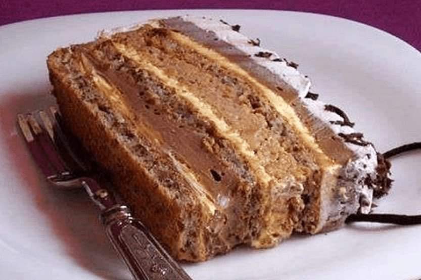 Umutiti 3 slag krema od vanile sa mlijekom ili kiselom vodom i filovati: kora, slag, crni fil, kora, slag, bijeli fil, kora, slag, crni fil.