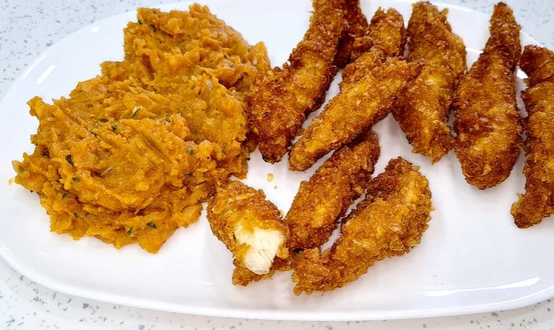 ovu hrskavu piletinu mozete posluziti uz bilo koji prilog poput pire krompira,spanaća,blitve.krompirica,restovanog krompira itd
