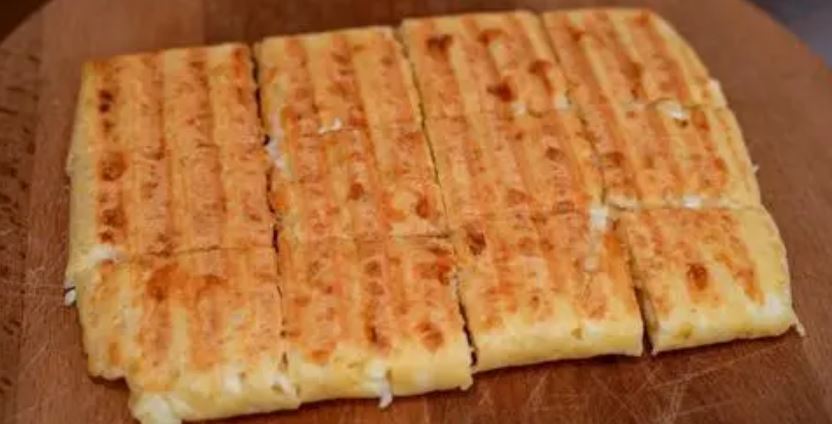 Priprema: U posudi pomešajte brašno, jaje i izdrobljeni feta sir. Sjedinite da dobijete testo. Stavite na pek papir i preklopite ga njime. Rukama malo spljoštite testo i stavite u zagrejan toster sa sve pek papirom 15 minuta, a onda bez pek papira 5 minuta.