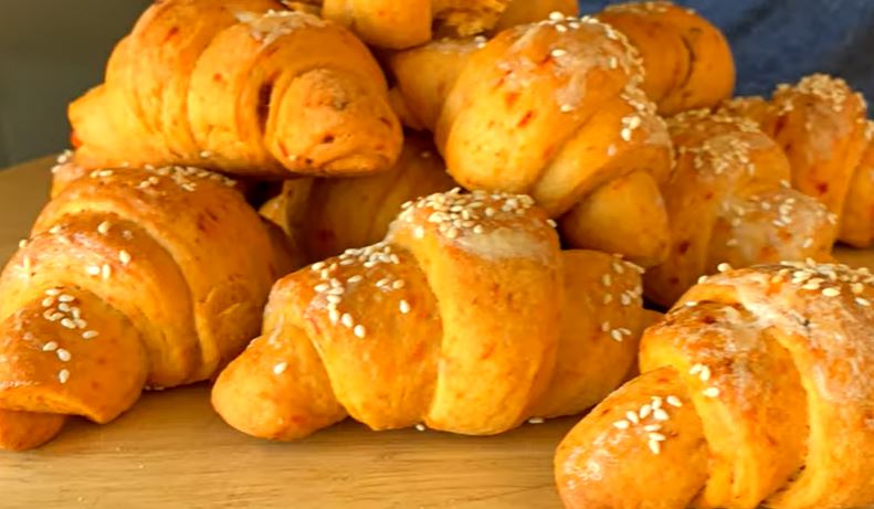Odlične kiflice sa ajvarom, koje se veoma brzo i lako pripremaj. Kiflice možete premazati posnim majonezom ili uljem.