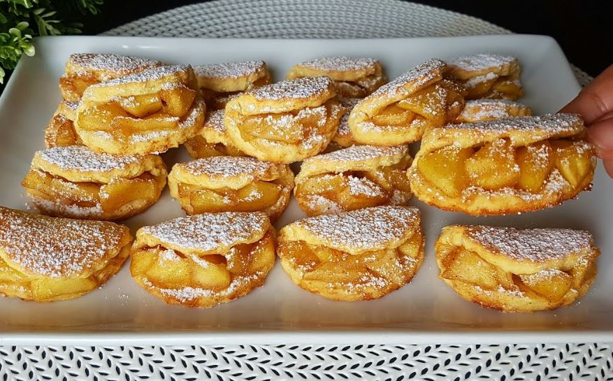 Priprema: Umesite testo od navedenih sastojaka. Pre toga pripremite fil. Testo razvaljajte na ravnu površinu, isecite ga većom čašom na krugove. Krugove filujte i presavijte. Pecite i pečeno pospite prah šećerom. Uživajte.