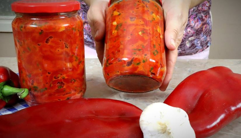 Zimnica cepkana paprika iz tegle bez konzervansa sa belim lukom i persunom postupak pripreme i recept savrsena jesenja i zimska salata koja ide uz pecenje i sve vrste jela.