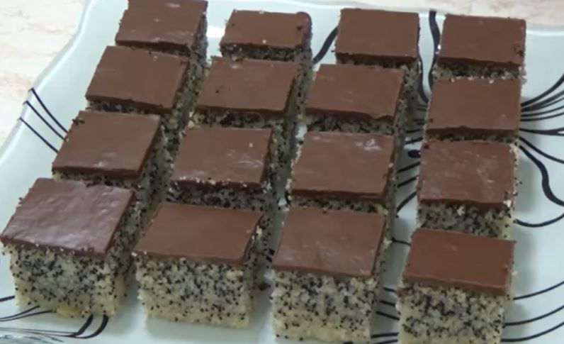 Pomešati suve sastojke: brašno, prašak za pecivo, griz, mak i šećer. Dodati ulje i kiselu vodu i sve dobro izmešati. Pleh veličine 20×30 cm obložiti papirom za pečenje i sipati smesu. Kolač peći na 180 stepeni od 25 do 30 minuta. Istopiti čokoladu sa malo ulja i preliti preko prohlađenog kolača.