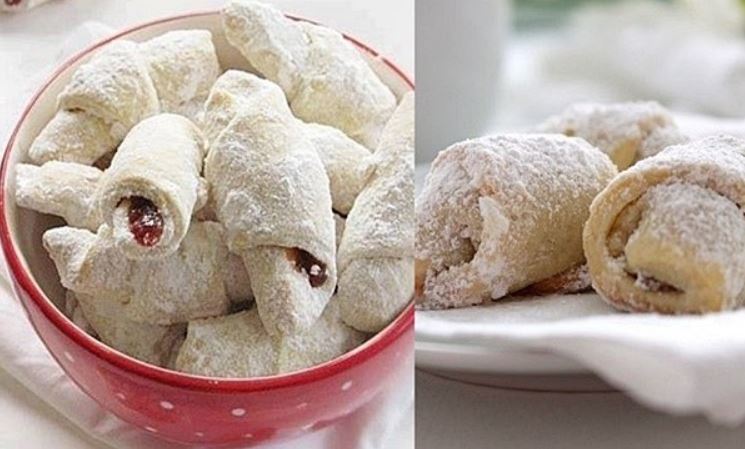Stavite na svaki deo po malo marmelade i motajte kiflice koje redjate na pleh sa pek papirom i odmah pecete dok ne porumene.