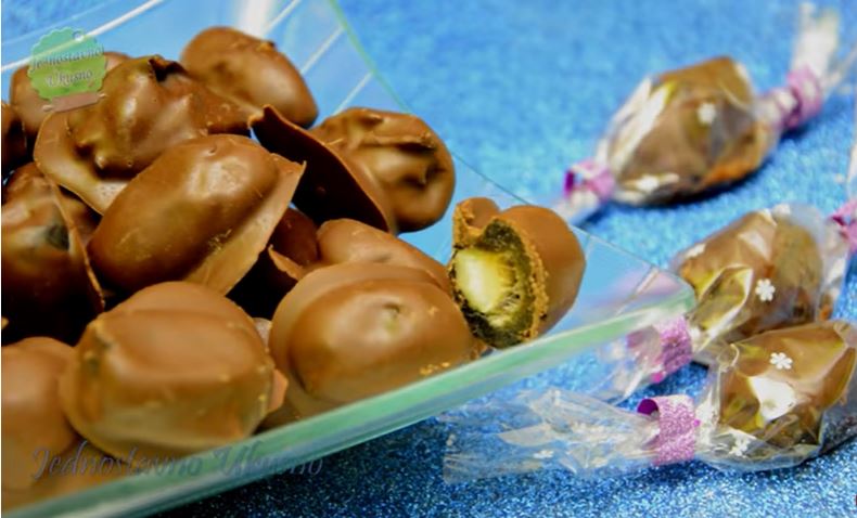 U svaku urmu stavimo po jedan badem i čvrsto je zatvorimo, što nije teško, jer se lepe same po sebi.