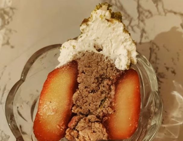 Puniti jabuke smesom od oraha pa odozgo dodati slag i po zelji pistace za dekoraciju