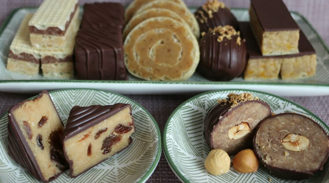 osnovna smesa + 100 gr mlevenih posnih napolitanki sa ukusom lešnika + oko 50 gr celih pečenih lešnika + oko 100 gr čokolade za glazuru