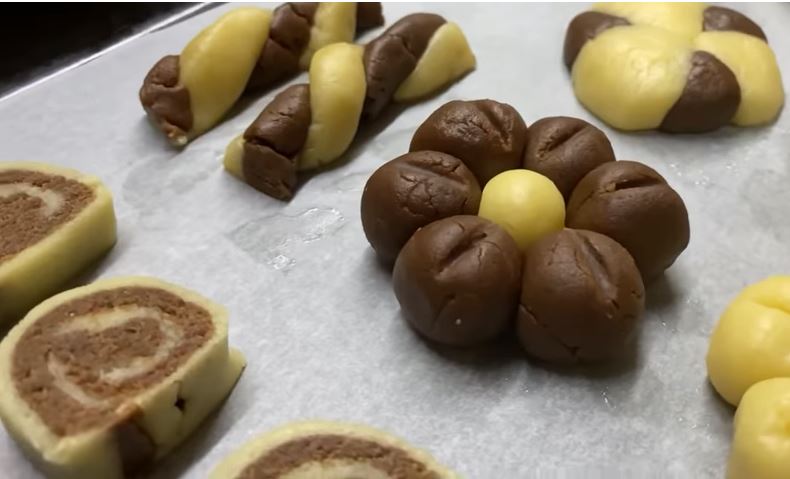 Priprema: Umutite maslac i šećer, a onda dodajte brašno. Dobijeno testo razdvojite na dva različita dela. Jedan deo ostavite takav kakav jeste, a u drugi deo dodajte kakao. Dobijeno testo uvijte u dve folije pa ostavite u frižideru da se odmori oko pola sata, a može i više.