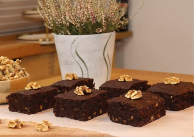 Brownie (čokoladni kolač) s orasima. Hrskavi preprženi orasi spojeni sa sočnim čokoladnim kolačem su pun pogodak za mene.