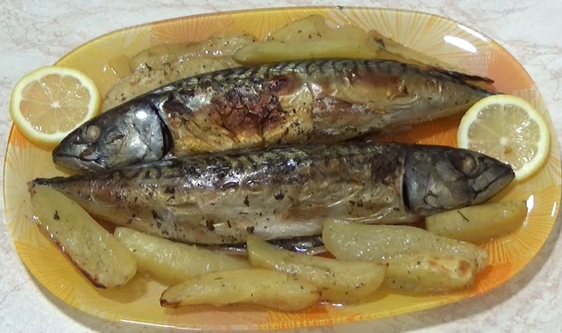 Skušu dobro posoliti. Dodati suvi začin i biber. Skušu napuniti belim lukom i peršunovim listom i preliti sokom od limuna.