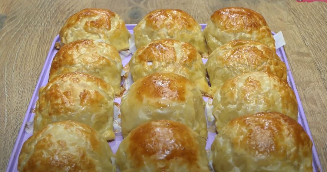 Priprema: Lisnato testo isecite na male kvadrate. Stavite ih u kalup za mafine, a sa donje strane stavite dve trake papira za pečenje. Premažite ih umućenim jajetom.