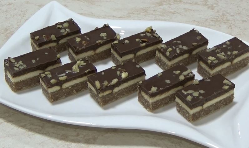 Preko keksa premazati prohlađeni drugi fil. Za glazuru istopiti čokoladu sa uljem. Preliti preko kolača. Po želji posuti seckani orasima i ostaviti kolač da se ohladi i stegne.