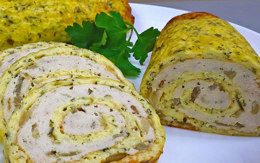 Slani rolat od piletine i tvrdog sira. Ideja za slano predjelo.