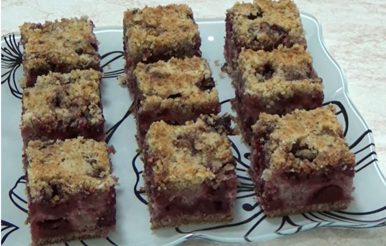 Pleh veličine 25×35 centimetara podmazati margarinom. Suvu smesu podeliti na 3 dela. Jedan deo sipati u pleh i uravnati. Pola fila od višanja rasporediti preko prvog dela smese. Preko višanja posuti drugi deo suve smese i malo rasporediti i uravnati. Zatim naneti drugu polovinu višanja. Preko višanja posuti treći deo smese. Preko trećeg dela smese narendati zaleđeni margarin.