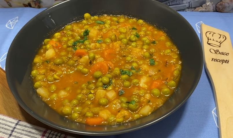 Sastojke prilagodite svojim potrebama! U samom videu ja vam govorim sta i koliko sam ja stavila za nas troje. 1 veca glavica luka,3 mrkve,2 krompira,1 veca tikvica,1 čaša paradajz soka ili jedan veći paradajz,1 kg graška,so, biber i prešun