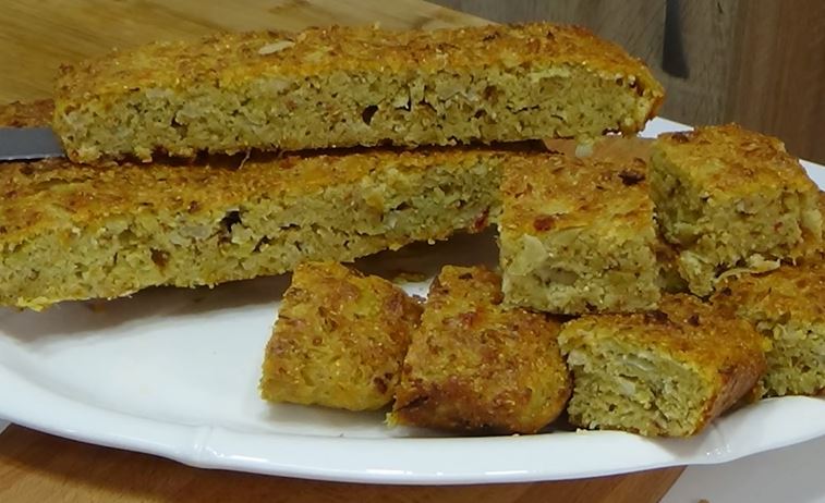 Izliti u pleh obloćen papirom za pečenje i peći u zagrejanoj rerni na 200c./20-25min.