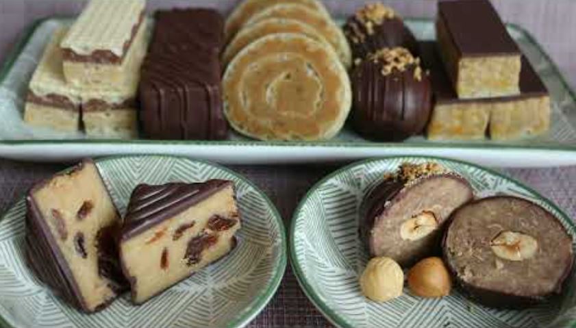 osnovna smesa + 50 gr kokosa + 8 kašika sojinog mleka + 2 reda crne čokolade + pola lista oblande