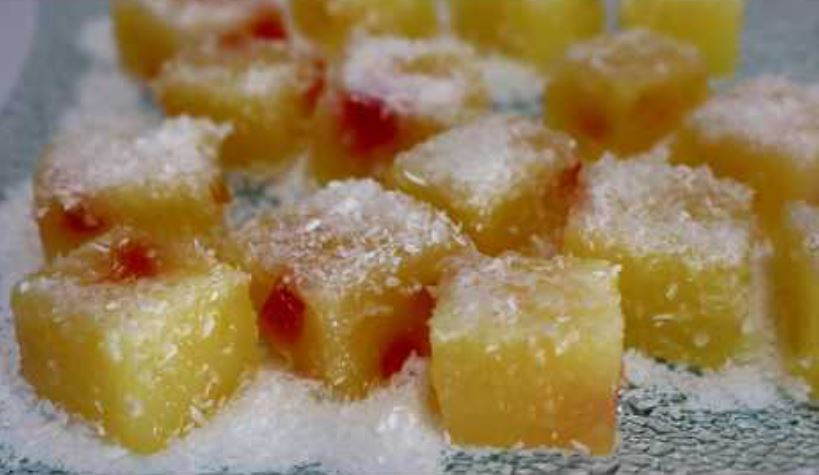 KUJNA,Posno | February 1, 2023 izvor:Domaći Kuhar Griz: 6 kašika griza 2dl soka od limuna Puding: 2 pakovanja pudinga od vanilije 14 kašika šećera 2dl vode Za prokuhati: 2dl vode Ostalo: kokos žele bombone Detalje pripreme pogledajte u videu: Trik da izbelite krpe: Biće kao nove, nestaće čak i one najupornije, stare fleke Žerbo kuglice – Domaći video recept
