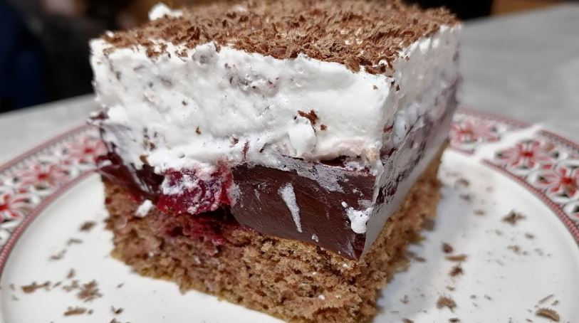 Kremast kolač sa višnjama i pudingom od čokolade.