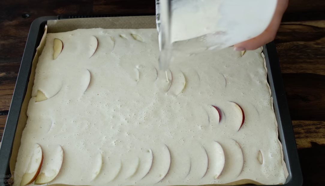 Jabuke očistite i isecite na kriške, pa poređajte po testu.