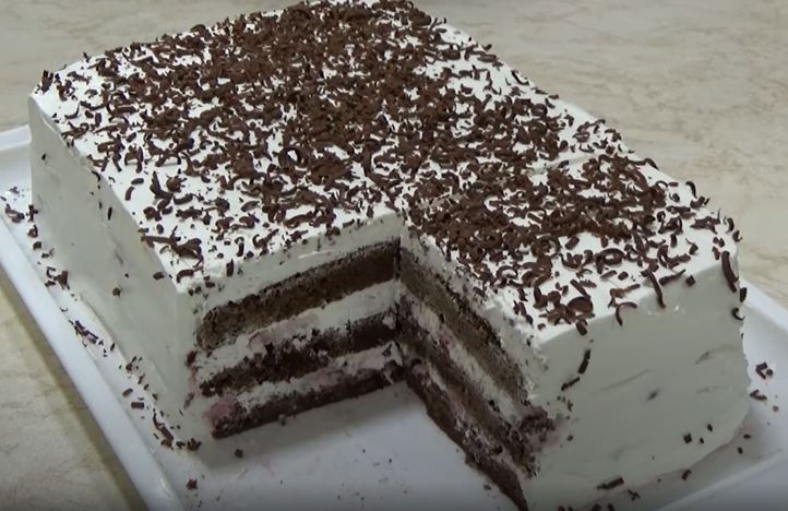 Koru natopiti sokom od višanja. Zatim koru premazati filom. Po filu rasporediti višnje. Preko višanja premazati fil. Staviti drugu koru i ponoviti postupak. Treću koru natopiti sokom i premazati ostatkom fila.