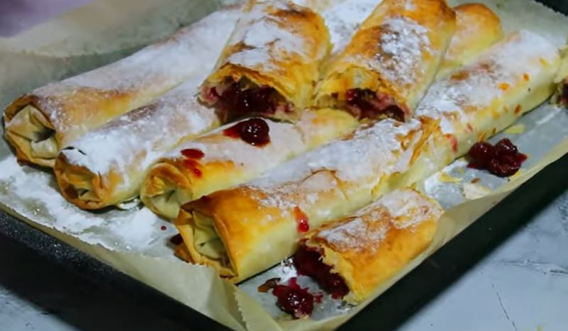 danas sa vama delim recdept za HRSKAVA PITA SA VIŠNJAMA koja se pravi na BRZ i JEDNOSTAVAN način. Nije vam potrebno mnogo sastojaka, većinu i imate. Ovaj ukus se dugo pamnti i niko joj ne može odoleti. Potrebno vam je najviše 15-20min za pripremu, ako i toliko.