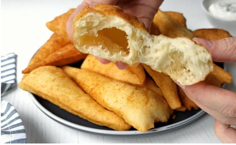Umutiti jaje, dodati jogurt i veći deo brašna, 300-350g, so i prašak za pecivo, kratko sjediniti, pa dodati i ulje. Zamesiti testo na pobrašnjenoj podlozi. Dodavati preostalo brašno i mesiti tek toliko da se formira lopta od testa. Rastanjiti je oklagijom na debljinu od 5mm, pa iseći na 16 trouglova.