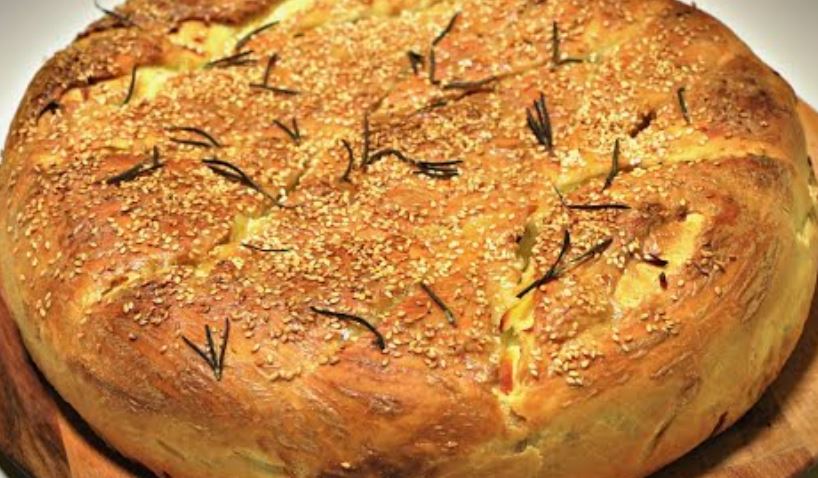 Sastojci i priprema: 40 gr. kvasca, 400 ml. mlake vode, 700 – 800 gr. brašna, 2 kašičice soli (plus da se posoli krompir), 2 kašičice šećera, 100 ml. ulja, 4 srednja krompira, 150 gr. posnog margarina, 3 – 4 kašike posnog majoneza, susam.