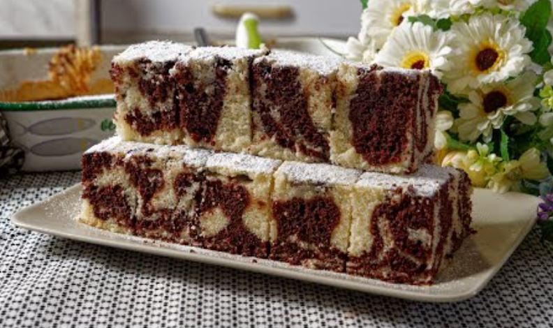 Brz, jednostavan i jeftin mramorni kolač od sastojaka koje već svi imate kod kuće. Juče sam ga pravila, a danas ga već nema. Odličan uz čašu mleka i popodnevnu kaficu. Kolač može da se zalije i sirupom od šećera i vode ili premaže pekmezom. Odaberite sami, kod nas se pojeo ovako klot!