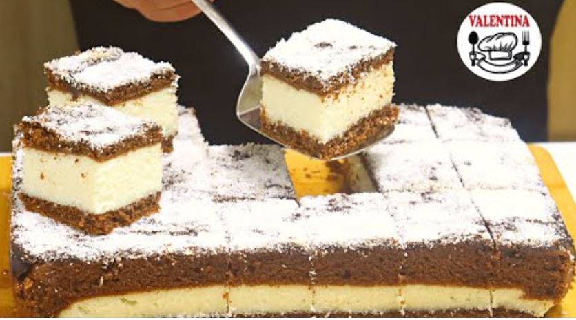 Peći u zagrejanoj rerni na 180c./8min. zatim dodati fil i drugi deo biskvita pa nastaviti na istoj temperaturi još 12min.