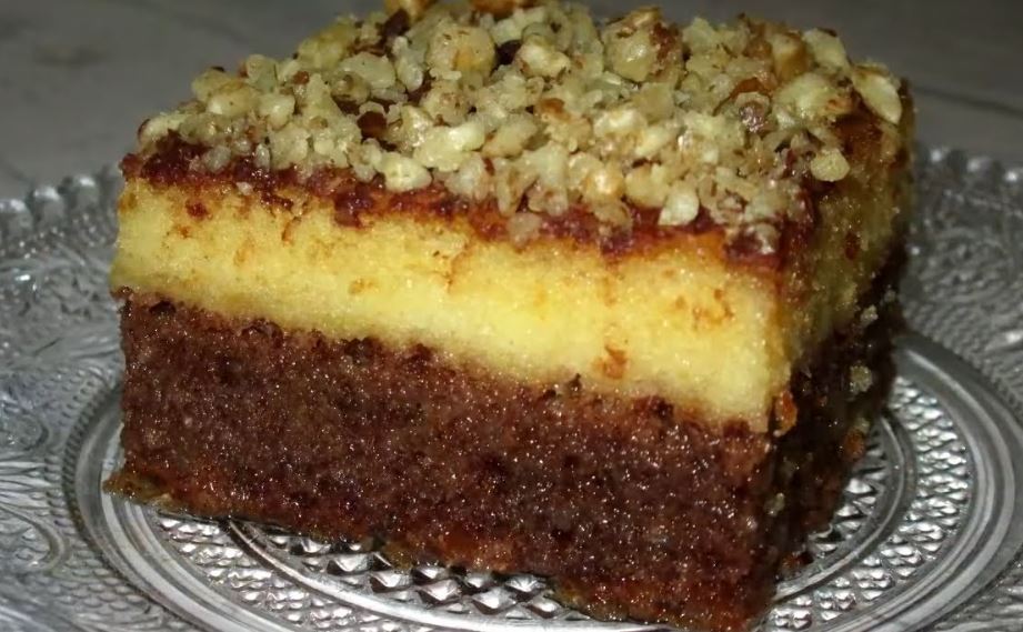 2. testo: Umutiti jaja sa šećerom, dodati brašno i griz i sve lepo sjediniti. Sipati na polupečeno, prvo testo i ispeći kolač.