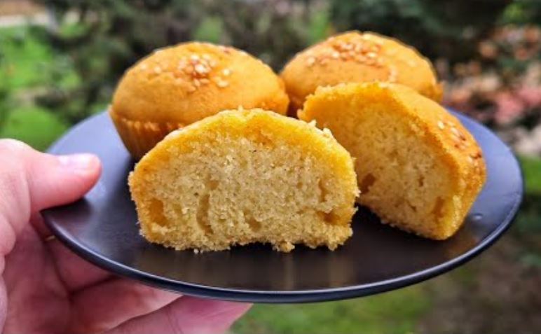 Izliti testo u kalup za mafine sa korpicama za pečenje. Puniti ih skoro do kraja, posuti susamom i peći u zagrejanoj rerni na 180°C 20 minuta BEZ VENTILATORA.