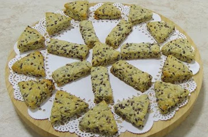 Testo odmah razvući na debljinu jednog centimetra. Deo testa iseći na štapiće veličine 2×6 centimetara. Drugi deo testa seći modlom u obliku trougla stranice oko 5 centimetara. Štapiće i trougliće poređati u pleh na papir za pečenje. Staviti ih u zagrejanu rernu na 200 stepeni da se peku oko 15 minuta.