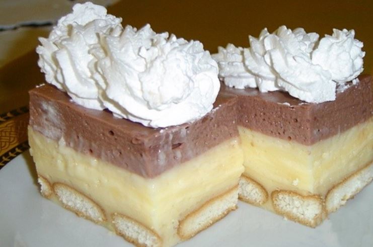 Kuhati puding od čokolade u 4 dcl mlijeka sa 2 žlice šečera. Kad je kuhan staviti 4-5 žlica tučenog vrhnja i lagano promješati. Kremu staviti na kekse. Kolač dobro ohladiti i ukrasiti šlagom.
