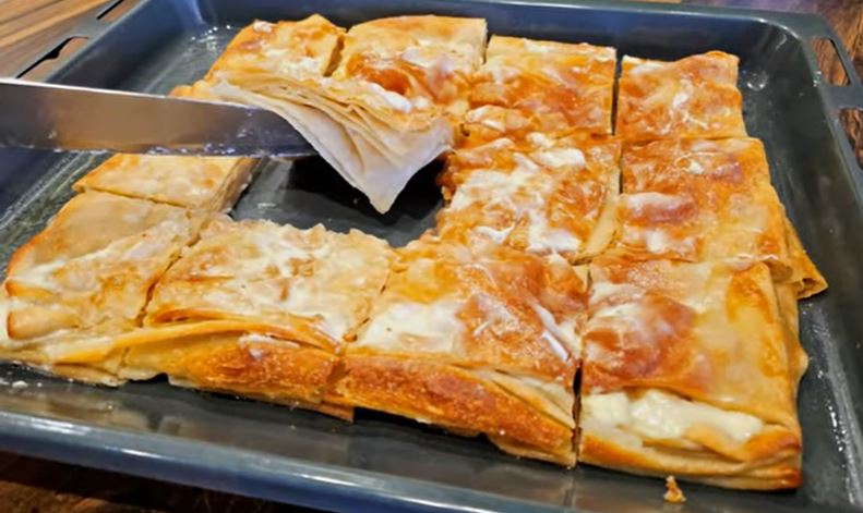 Ja sam radila tanku maslanicu u veliki pleh od rerne. Ukoliko želite da je deblja, smanjite tepsiju i povećajte broj preklapanja tijesta.