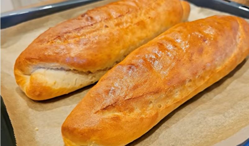 Hljeb stavite u dobro zagrijanu rernu, pečete na 250 stepeni oko 10 minuta a potom smanjite temperaturu na 200 stepeni i pečete još 15 minuta.