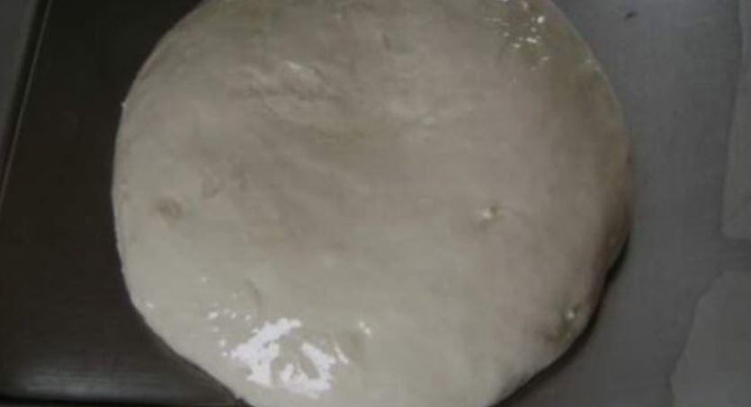 Sami cemo odrediti kolicinu tijesta koja nam je potrebna za obrok. od ove, navedene kolicine treba da dobijemo tri jufke – to je dosta za veliku tepsiju (promjera 50). Mijesimo i došli smo do kolicine tijesta koja nam je dovoljna – prekidamo sa dodavanjem vode, sada mijesimo sa obje ruke. u vangli imamo jos brasna oko tijesta – i neka ga, trebace nam kasnije. Tijesto se vec poprilicno sčvrsnulo – ne treba pretjerivati sa posipanjem brasnom, da ne postane pretvrdo. Da bismo to izbjegli, ovo jos nedovrseno tijesto izvadimo iz zdjele i desetak minuta mijesimo na radnoj povrsini, povremeno, dok za to postoji potreba, posipajuci ispod tijesta pomalo brasna – dok ne prestane da bude ljepljivo. Od ukupne kolicine tijesta odvojimo tri lopte – jufke. pojedinačno svaku dobro premijesimo i ostavimo da odmaraju desetak minuta. Nakon deset minuta, ponovo premijesimo sve tri jufke – odmah cete pod rukom osjetiti da je tijesto znatno mekanije i “podatnije”. jos jednom formiramo jufkice, premažemo ih uljem i ostavimo na toplome da odmaraju oko sat vremena.to, na kome cemo razvlaciti kore, prekrijemo starim stoljnjakom ili carsafom. sredinu pospemo sa malko brasna. uzmemo jufku, pobrašnimo oklagiju i razvucemo oklagijom koliko god je to moguce. promjer jedne osrednje jufke kad se ovako razvuce ne bi trebalo da prelazi 40-50 cm. Na šporetu drzimo u serpici toplo ulje (ili mast) – temperature 30-40 stepeni. toplim uljem (2-3 kasike) preprskamo razvucenu jufku i razmazemo rukom po cijeloj povrsini – ovo je vazno, da nam tijesto ne bi pucalo dok se razvlači. E sada zavrćemo rukave, i nauljenih ruku, poput italijanskih pica majstora krećemo da vrtimo tijesto.