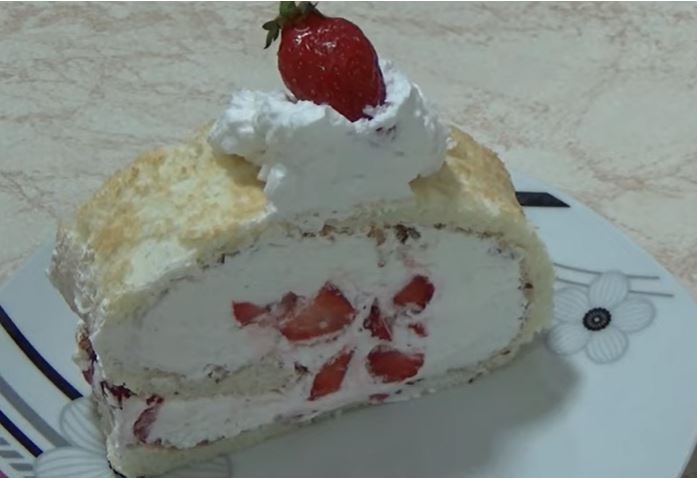 Ono malo odvojenog šlaga kašikom staviti po vrhu rolata kao pufne. U šlag staviti nekoliko celih jagoda.