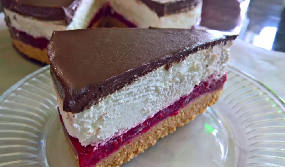 Kolač sa malinama i čokoladom. Ovaj kolač treba probati.