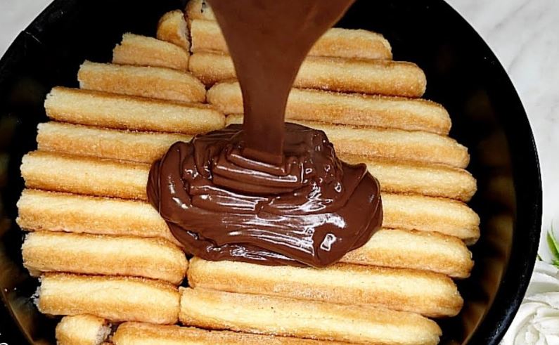Priprema: Okrugli kalup prečnika 22cm obložite natopljenim piškotama, ali ih ređajte ne naličjem u kalup, već stranom, kako bi stalo više. U šerpici pomešajte šećer, kako i skrob. Dodajte mleko, promešajte da nema grudvica pa stavite na ringlu, uz stalno mešanje žicom dok se ne zgusne.