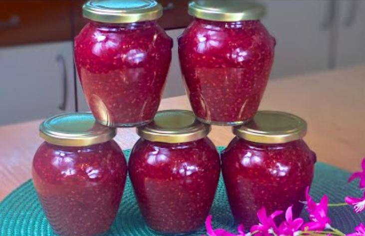 Oprane maline staviti u šerpu i preko njih posuti šećer. Kuvati do željene gustine uz neprestano mešanje. Optimalno oko 45min. Vruć džem stavljati u prethodno zagejane tegle. Zatim lepo zatvoriti, vratiti u rernu 90 minuta na 90 stepeni. Nakon toga rernu isključiti a tegle osatsviti da prenoće. Prijatno!