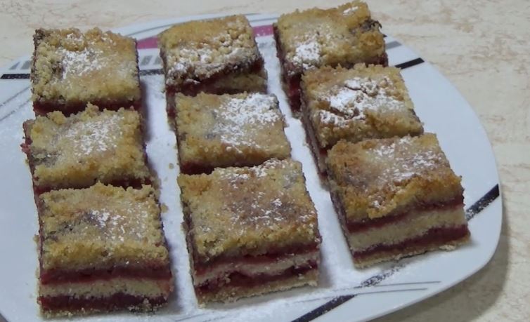 Pleh veličine 20×30 podmazati uljem i brašnom. Sipati i uravnati prvi deo suve smese. Potom sipati pola fila od malina i ravnomerno rasporediti. Preko malina sipati drugi deo suve smese. Preko suve smese sipati preostale maline. Preko malina rasporediti treći deo suve smese. Na kraju preliti uljem. Ulje rasporediti po celoj površini.