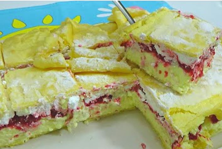 Gotov kolač ohladite i posipajte šećerom u prahu.