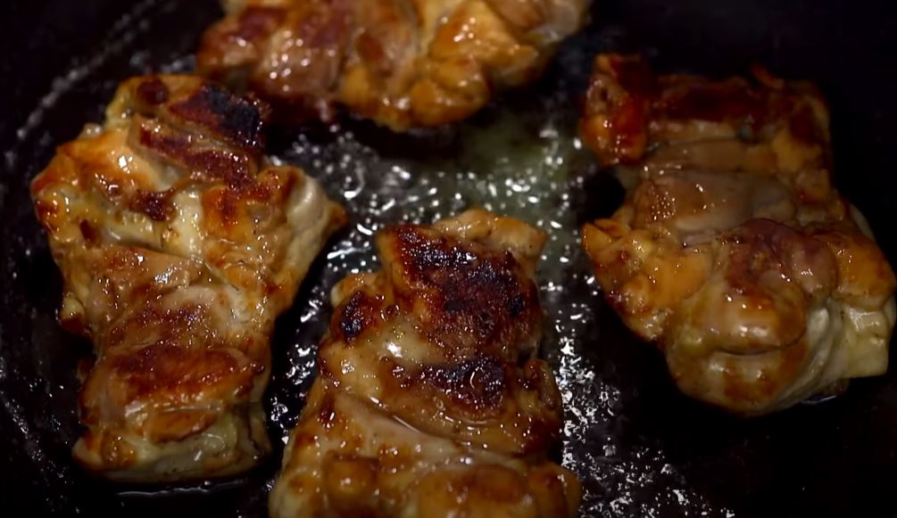 Priprema: Batake odvojite od kostiju i stavite u činiju. odozgo iseckajte na trake beli luk i đumbir. Dodajte so, biber, šećer i soja sos. sve pomešajte rukama da bolje upije. Pokrijte providnom folijom i ostavite 20 minuta. Zatim, pržite na laganoj vatri 8 minuta sa svake strane, pa dodajte 15 g putera i pržite još 5 minuta. Servirajte toplo.