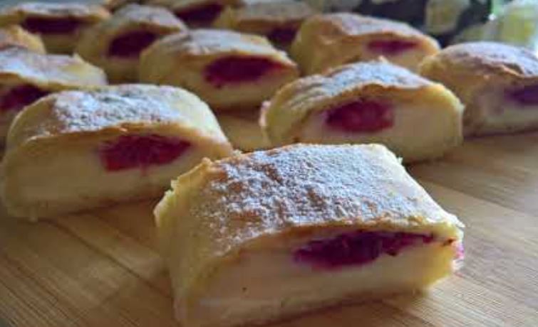 Štrudla prelepog ukusa i mirisa, sa malinama i vanil kremom.